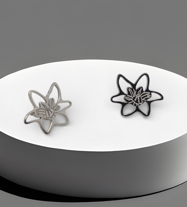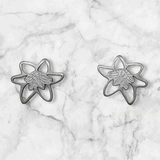 These abstract lily studs are designed by Cheryl and are laser cut and engraved/finished in a UK jewellery workshop.