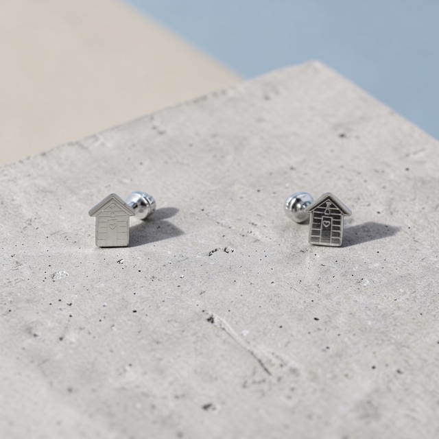 Beach Hut Sterling Silver Earring Studs